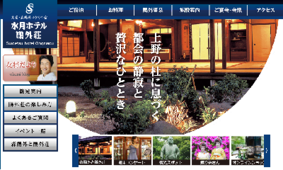 水月ホテル鷗外荘は、敷地内に明治の文豪・森鷗外の旧居を保存した由緒あるホテル。名作「舞姫」を執筆した部屋や庭を保存しており、「舞姫の間」として宴席などにご利用です。また、ここのホテルの特徴は都内第一号認定の天然温泉(重炭酸ソーダ泉の黒湯)があるという点で、外国人観光客にも大変人気のスポットです。